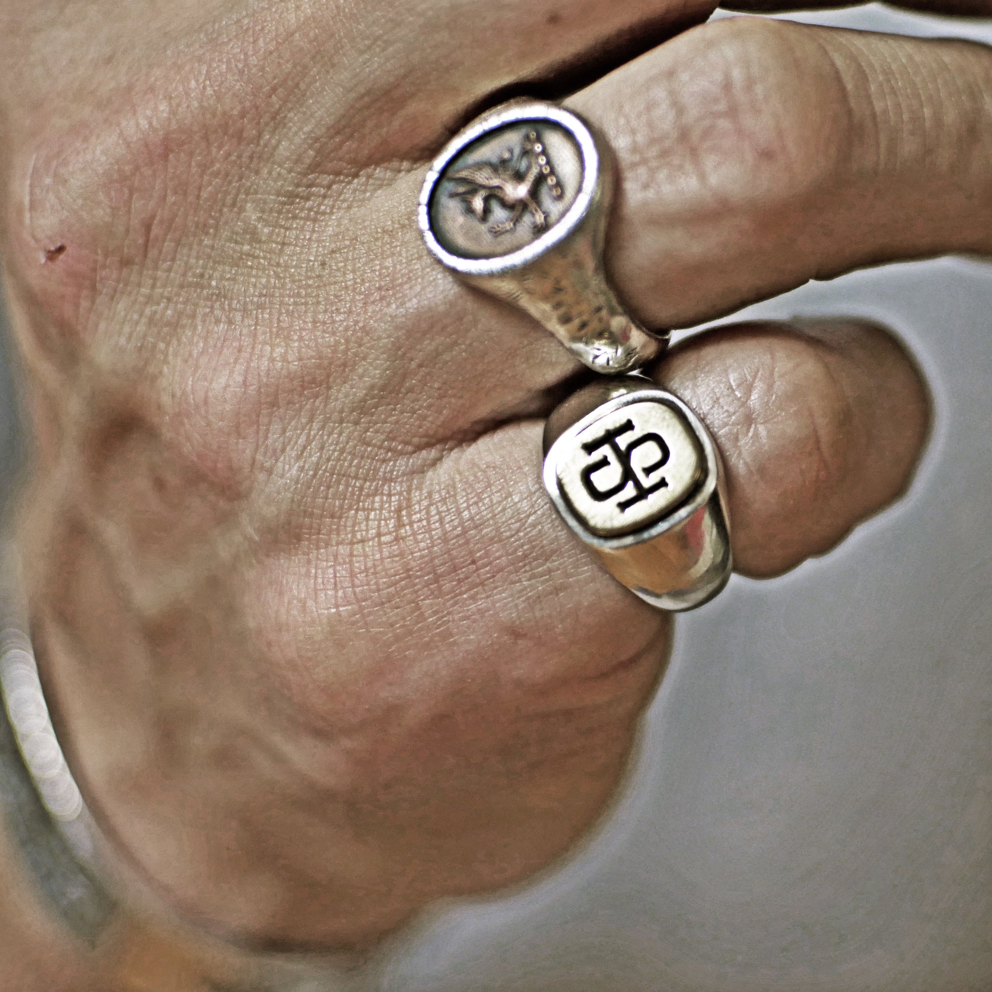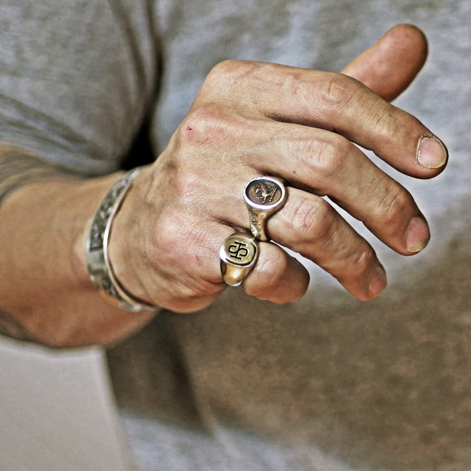 2 initials engraved medium weight simple signet ring. The monogram job is done from 'www.kittl.com'